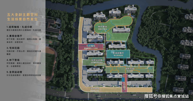 景观设计:四时花园、500米环形跑道、全龄活动区