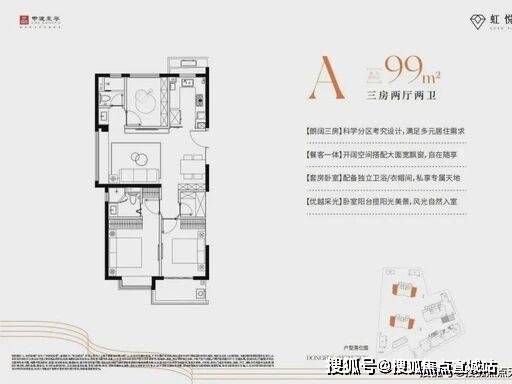 建面约 99㎡ 三房两厅两卫(三开间朝南)