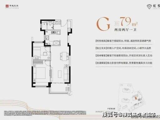 建面约 79㎡ 两房两厅一卫(总价 580 万起)