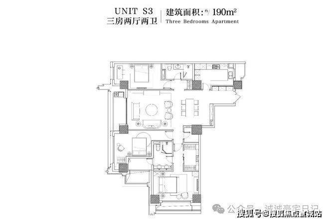 190㎡3房 东南朝向或西南朝向(一梯两户)⬇⬇