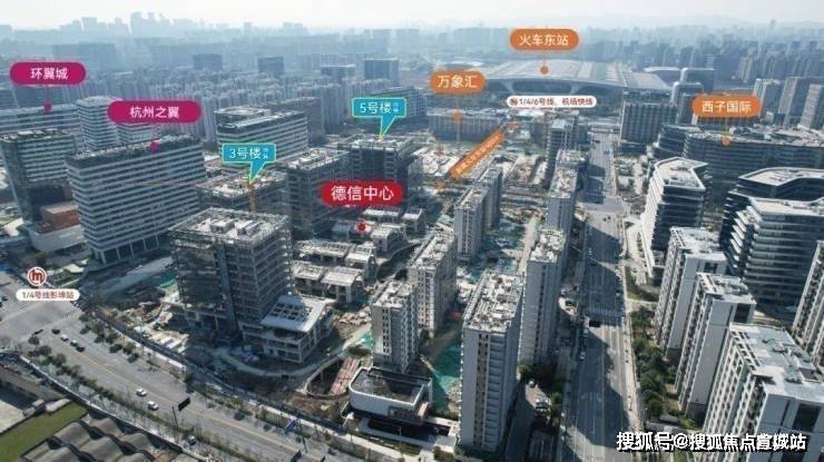 德信中心与杭州东站直线距离约400米,与杭州之翼、环翼城等组成约62万方德信商业集群,成为总部企业发展基地。坐揽万象汇、东站电子国际、港龙游乐城等商业,人潮所向,造就区域内难得一见的门户封面。