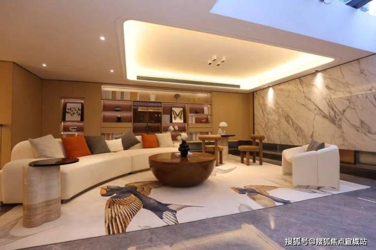 通过优化后的“L型”空间排布,实现了三面有园林环绕,前庭空间尺度非常大,一进门就是约10.2米的大横厅,气派十足,采光也做到极致,日常起居极为从容舒适.