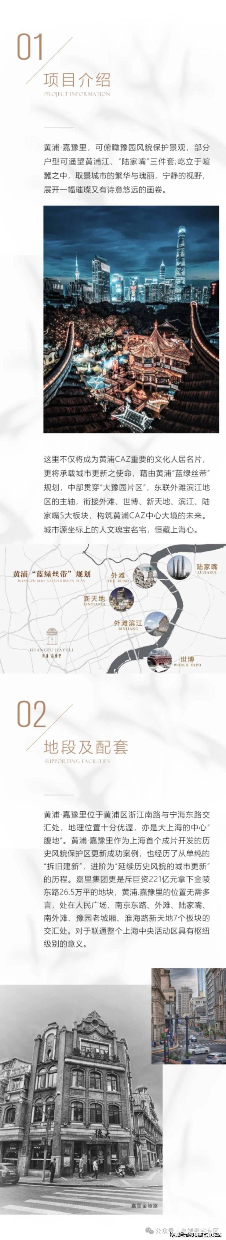 项目特色:项目可俯瞰豫园风貌保护景观,部分户型可遥望黄浦江、“陆家嘴三件套”。它是上海首个成片开发的历史风貌保护区更新成功案例,处于人民广场、南京东路、外滩等 7 个板块的交汇处,对于联通整个上海中央活动区具有枢纽级别的意义。
