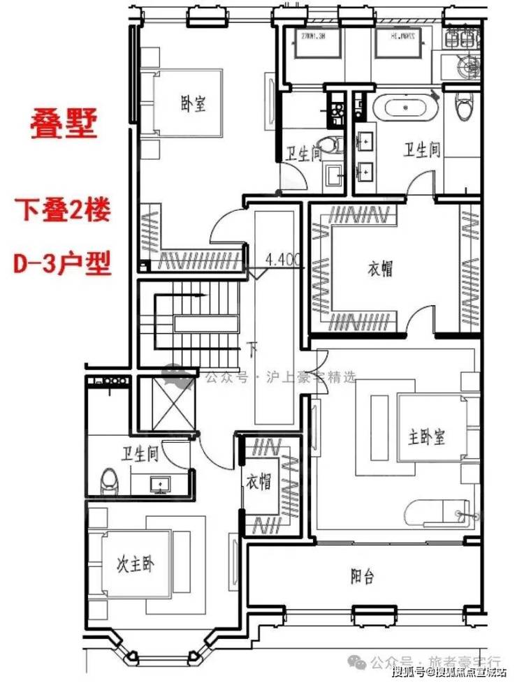 叠加别墅的2-3-4楼D-4特殊户型约433㎡。