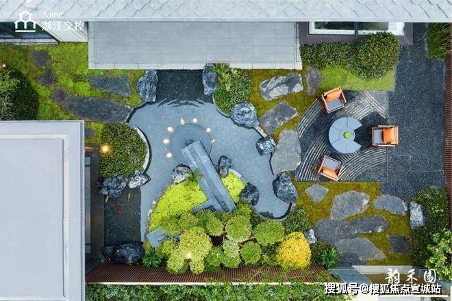 太湖石、锦鲤鱼、罗汉松,搭配出一幅婉约灵动的山水画。
