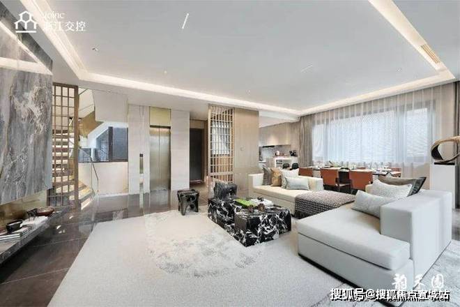 近9米的公区大横厅,气场十足,搭配大片落地玻璃,庭院景观一览无余。