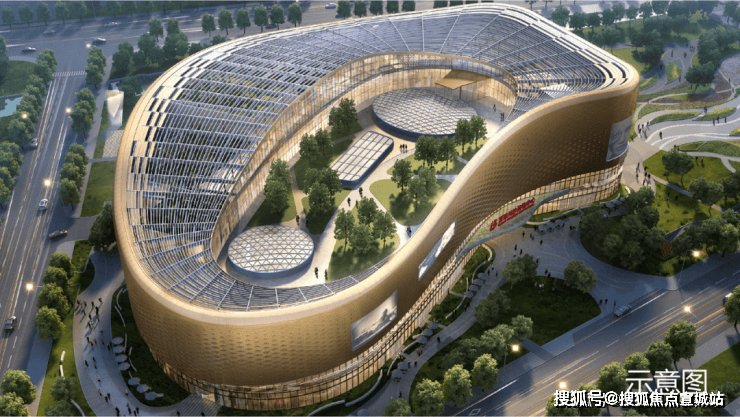 项目建筑为现代极简风格, 外立面采用多彩真石漆+香槟金色铝合金线条,顶部的塔冠设计是标志性特点。