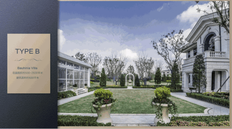 B户型:共5幢,花园面积约500-2830㎡,建筑面积约685㎡。