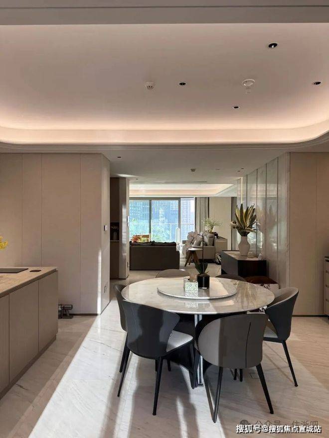 项目以三叶草为建筑原型,这样的建筑设计也造就了每户270度的环幕都市景观,较高的窗墙比为室内提供大尺度的采光面及通透感,阳光如流水般倾泻。