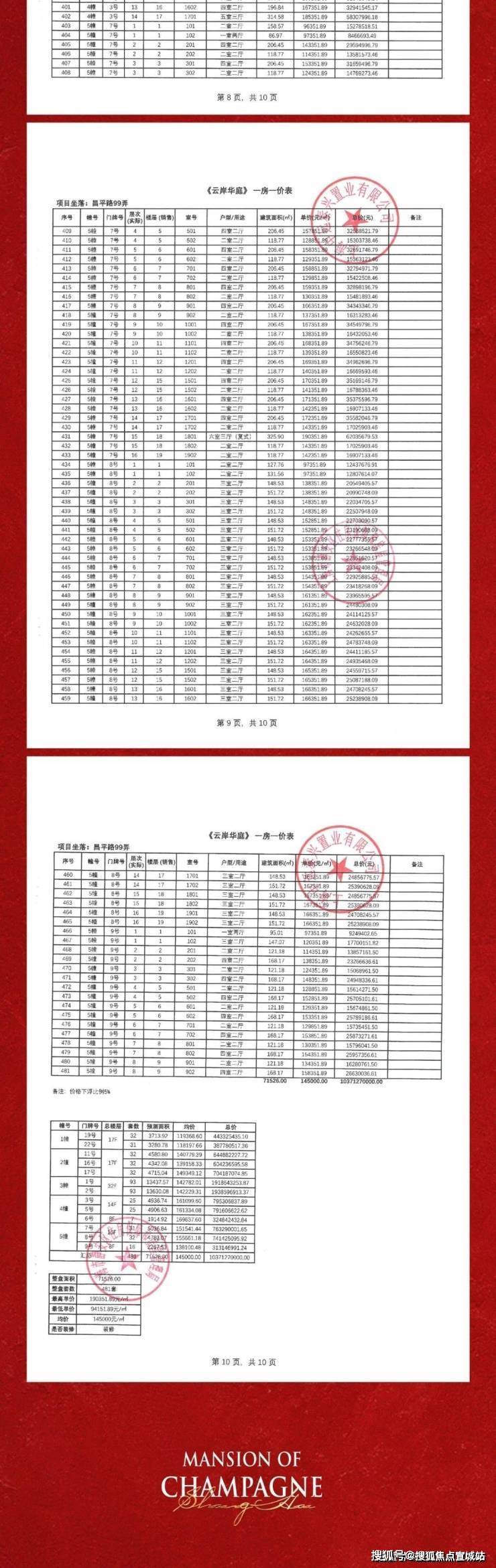 一房一价表如下