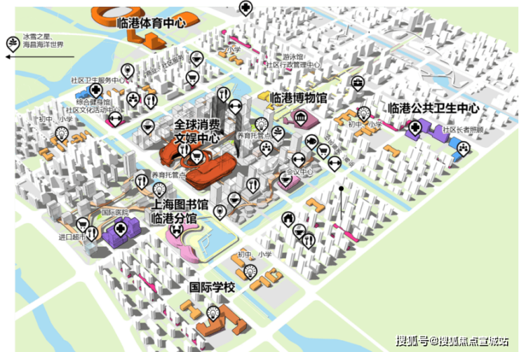 在配套上,项目是建面约63万㎡的城市综合体,包含商办地标、国际住区,及约2.9万㎡的商业;板块内规划有临港体育中心、图书馆、国际医院、中小幼学校等全维高阶配套。