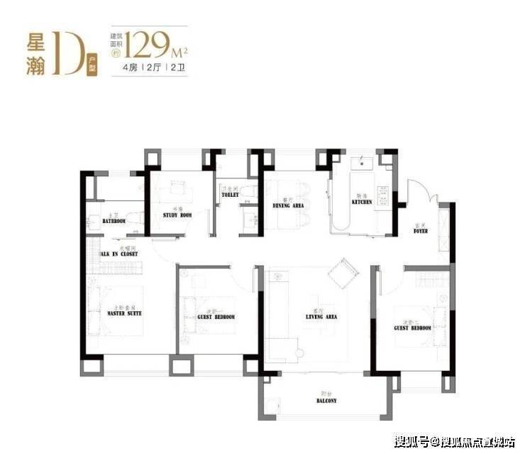 建面约129㎡户型4房2厅2卫