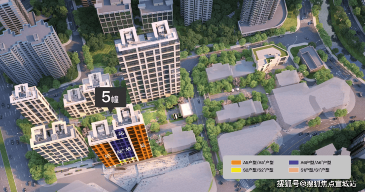 值得注意的是,5号楼属于全小区视野景观最好的楼栋之一,北侧就是小区的中央花园,南侧是4-5层的商办+屋顶绿化,前后的视野都非常开阔。