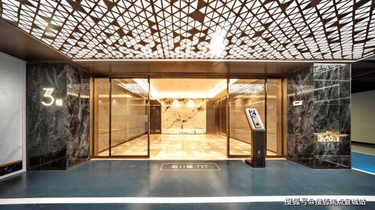地下归家大堂,电梯厅的地面都是木纹拼花石材,呈现视觉美。