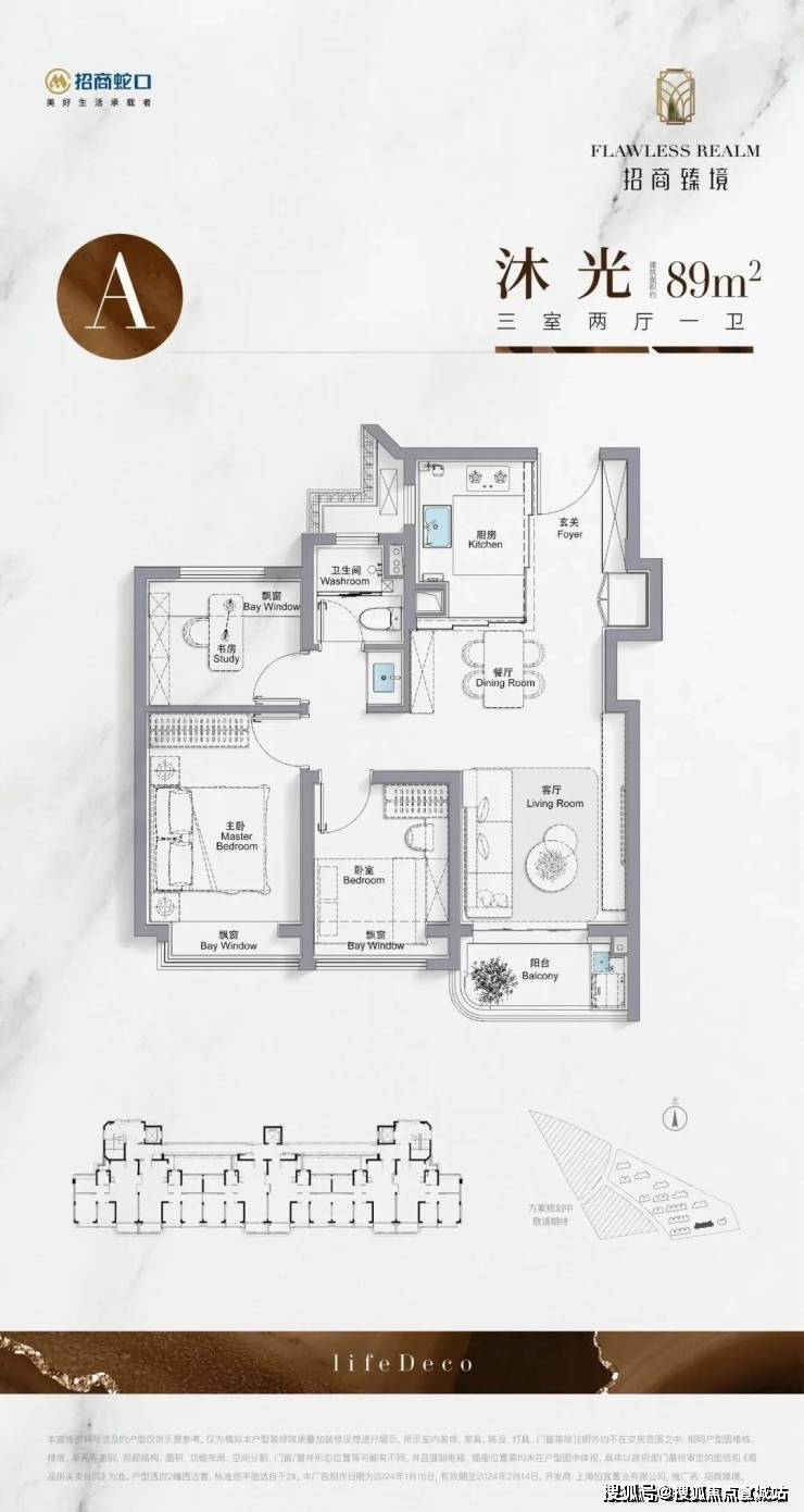 高层89㎡三房一卫采用“S墙”设计释放空间,三开间朝南+全卧室飘窗,总价456万起;