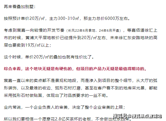 叠加别墅均价约19.8-20.3万元/㎡(总价约4800-6300万元)。