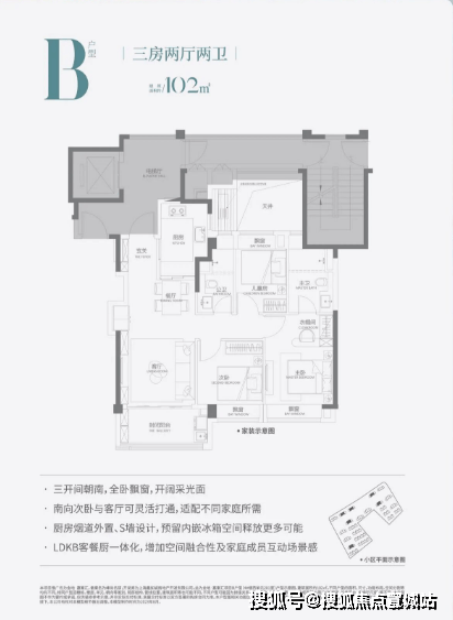 ●LDKB餐客厨阳一体化贯通中轴,撑起气场的同时,也提升了家庭成员的互动性和场景感;
