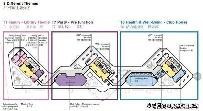 三幢公馆分别配备了不同主题配套设施,三楼顶层设有 800㎡ 环绕阳光跑道。