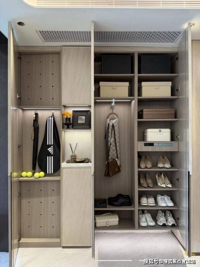 进门的玄关处,也从原来的2/3储物,提升到了整面墙的柜子并直接交付。