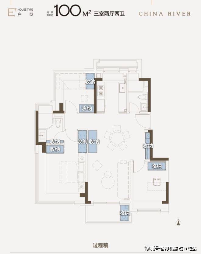 建面约100㎡3房,采用同级罕见的四叶草布局,三个房间距离较远,互不打扰,充分满足当代都市人对个人生活空间的需求。