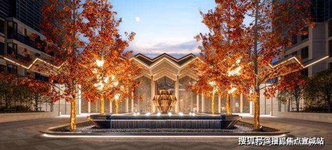 首先迎面的就是一个造型奢华的水系艺术喷泉景观,在加上挑高非常夸张的金属巨幕架空层,结合柔和的光影,给人的感觉就像5星级酒店,让您每一步归家,都仿若五星酒店下榻,尊崇感油然而生。