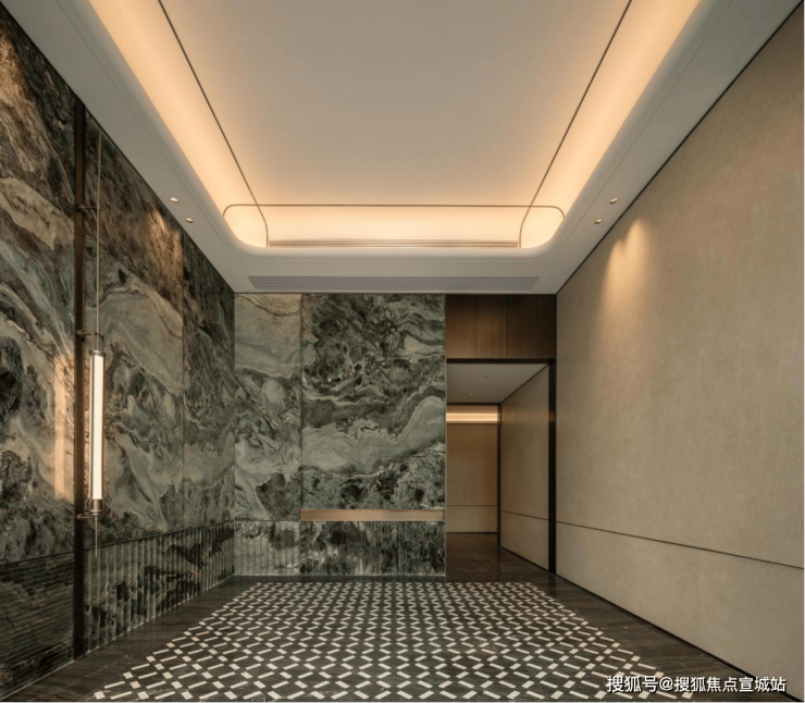 项目摒弃繁琐冗余的设计,以现代轻奢美学为核心,融合国企精工基因,打造独具特色的建筑肌理。建筑立面甄选高端质感石材与大面积玻璃,搭配简洁流畅的线条,勾勒出沉稳大气又不失灵动的天际线;局部点缀金属线条,既彰显高阶质感,又增强建筑的通透感,让阳光与绿意自然渗透,与周边生态景观、烟火氛围相得益彰;入户门采用高端铸铝装甲门搭配智能门锁,搭配仪式感入户前厅,每一处细节都彰显归家尊崇,兼顾安全性与品质感,尽显国企越秀的精工底蕴。