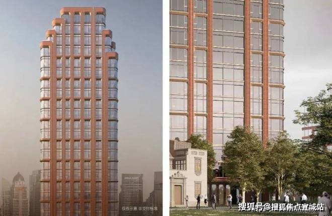 用Art Deco常用的竖向线条来解决高层建筑的挺拔感、用红色陶板来勾勒出海派老洋房的红砖意象。