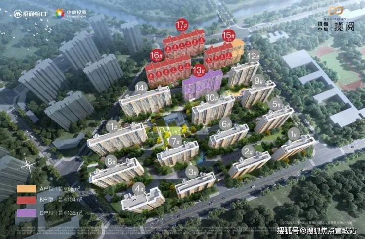 【招商中旅·揽阅】共计规划17栋12-14F小高层,首开楼栋位于整个项目的北侧,共3种户型,分别为建面约96㎡三房两卫、建面约104㎡三房两卫、建面约135㎡四房两卫。3种户型提供了全生命周期成长空间的方案。