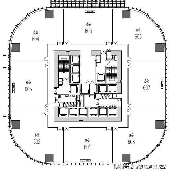 3层配套副楼作为商业及社区服务场所,横向的表皮处理仿佛是延绵起伏的江面,为市民提供了一个宜人通透的界面。屋顶平台的线条进一步向外延伸,将建筑与景观融为一体。具有艺术性的雨篷衔接双塔底层,为市民创造一个良好的步行体验。