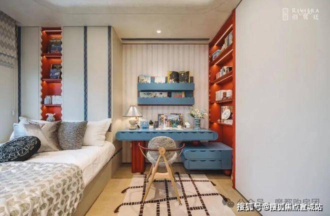 以建面约179㎡的边套为例,并未将北房间局限为常规卧室,而是灵活打造为HIFI音乐室与收藏阅读室,既可作为业主的灵感工作室,也能成为孩子的兴趣天地;