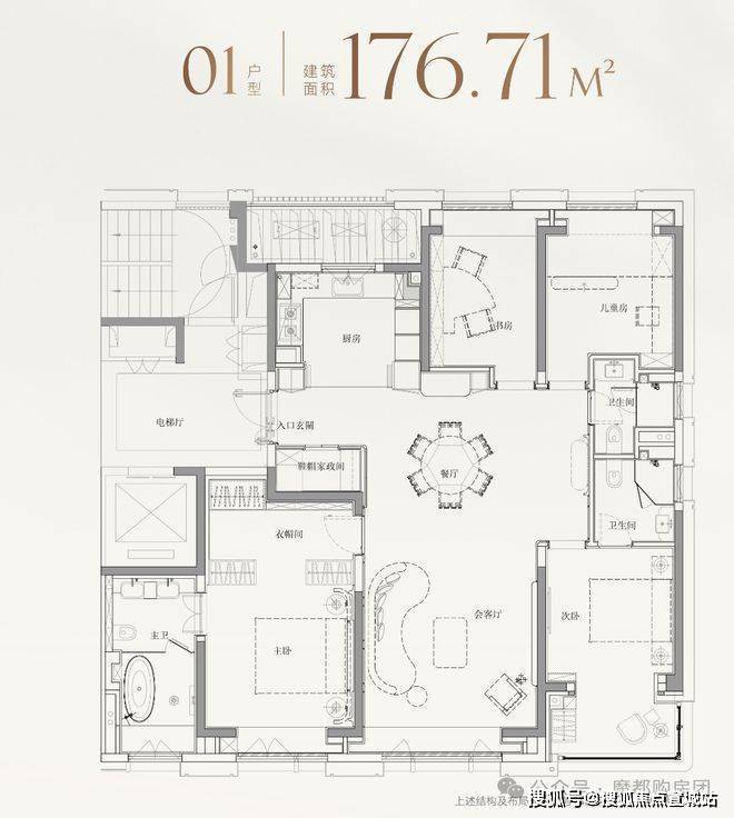 而建面约177㎡01室,则针对性地打造为4房格局,精准契合二胎家庭或三代同堂需求。