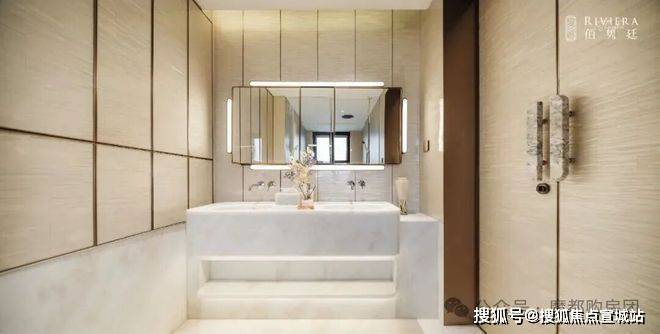 阳光满溢,尤其主卫罕见实现朝南采光,搭配奢华的双台盆、马桶间、浴缸与淋浴的“四件套”配置,尽显高端居住品质;