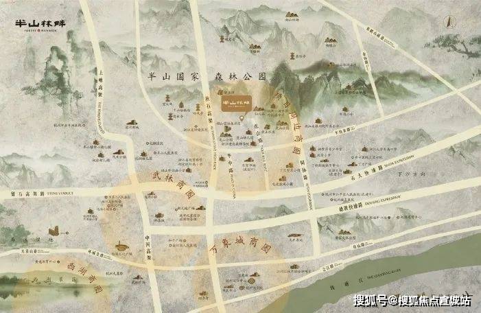 【项目四至】紧邻半山国家级森林公园 半山、龙山、虎山三大公园连通,组成一个大的半山森林公园,公园总面积约172公顷,总长23公里的游步道,森林覆盖率90.1%,空气负氧离子平均每立方厘米4000个,空气中细菌浓度也大大低于城区,森林公园多年平均气温16.5℃,年平均湿度80%左右,堪称杭州城区的森林氧吧