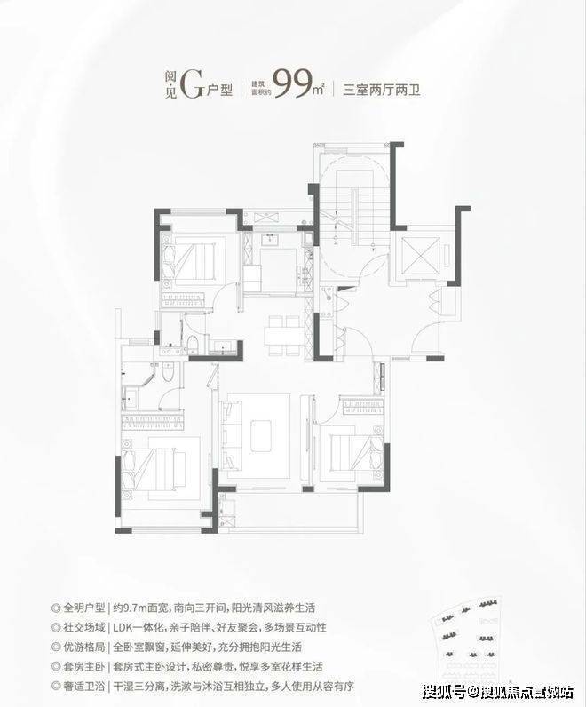①建面约99㎡F&G户型:南北通透+三开间朝南,备受认可的飞机户型!