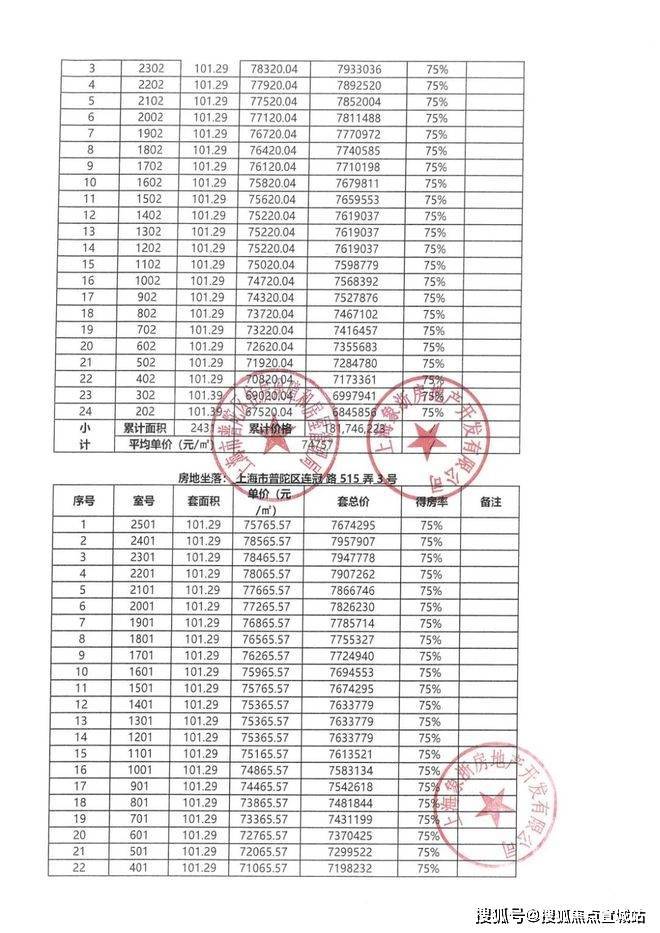 一房一价表