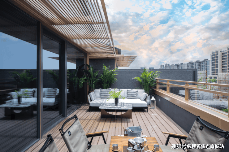 买合院一定要看「院房比」。展示区的这套约207㎡样板房,就有一个约80㎡的超大庭院。要知道,一套约200㎡的高层,客餐厅的大公区通常做到约50㎡,已经是很大尺度。但是,莳花弄草、饲鸟养鱼的优哉游哉,只有在合院的私家花园里才能实现。