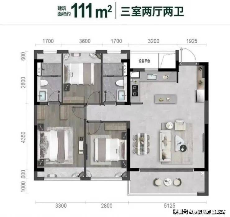 户型面积:有101㎡(三室两厅两卫)、111㎡(三室两厅两卫)和143㎡(四室两厅两卫)等户型。