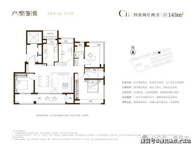 建面约143㎡四房,豪宅级的空间感