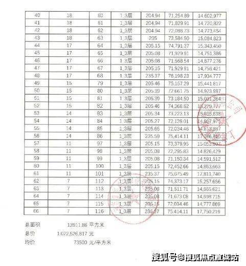 一房一价表: