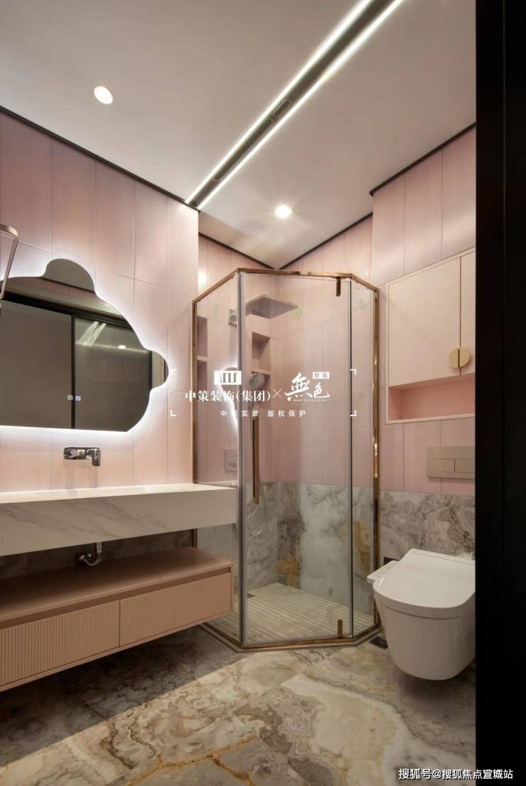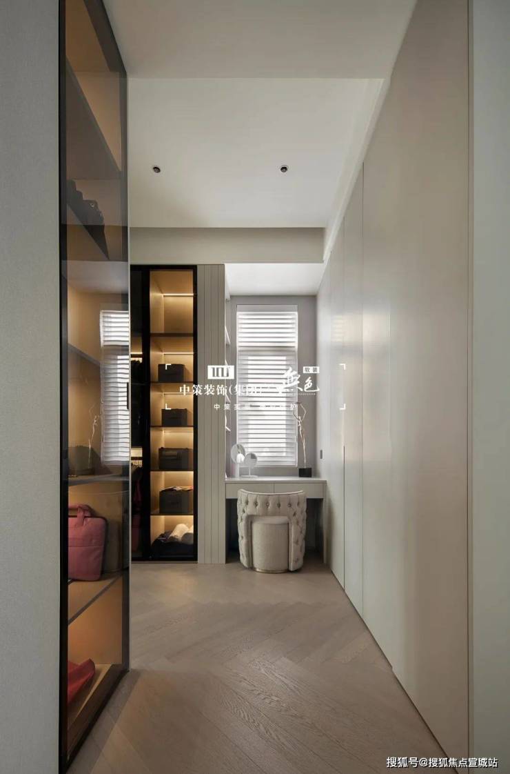 原户型的主卧套间没有缓冲区域,浴室、衣帽间正对主卧,私密感和空间使用感上都有瑕疵。因此,设计师在主卧布局上做了调整。