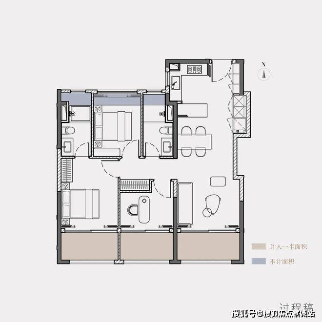 另外,直接提升了南次卧和主卧实用率更高,生活情境更丰富。