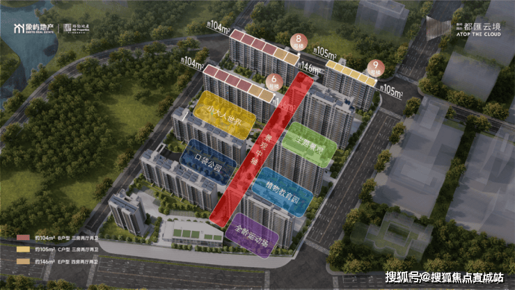 主力户型:高层 95-104㎡3 房 2 厅 1/2 卫;洋房 105-146㎡3-4 房 2 厅 2 卫。