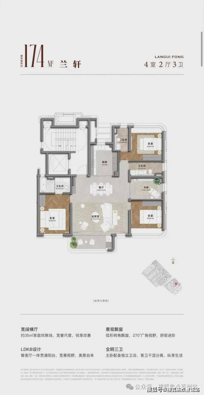 洋房户型:建面约 89-180 平方米,主力户型为 3 室 2 厅 2 卫或 4 室 2 厅 2 卫,户型方正通透,三开间朝南,LDKB 一体化空间设计。