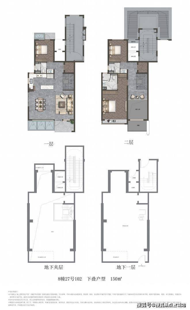 项目叠墅包含建面约141㎡上叠和建面约150㎡下叠.