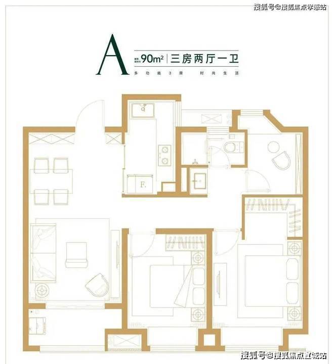 4.全能黄金户型:面积段覆盖刚需改善,设计科学,功能齐备,实用率高。