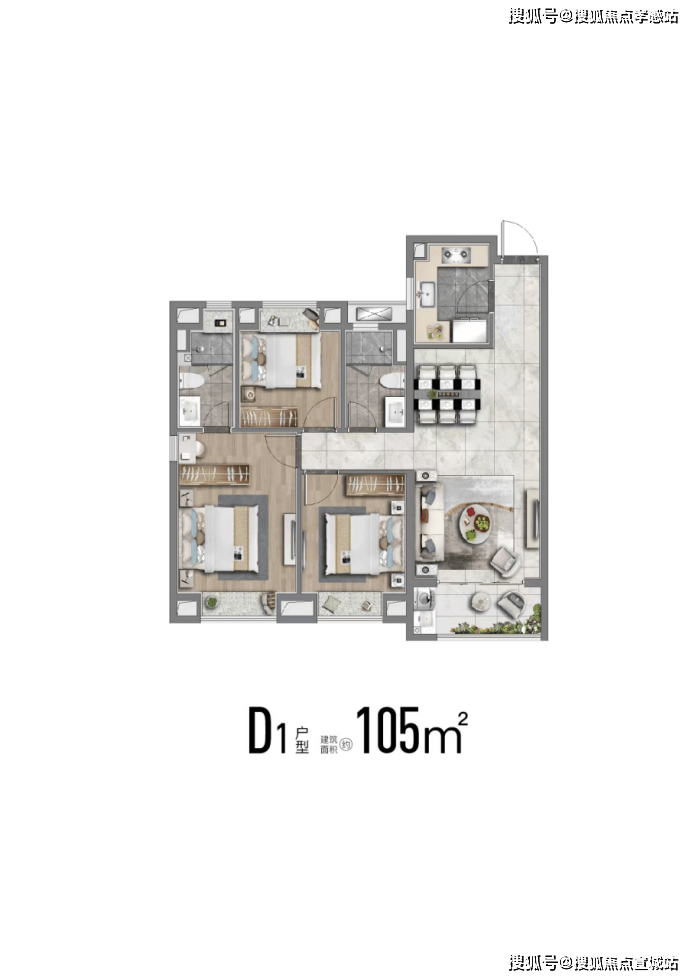 也有建面约113m²舒适性三房,南北通透;飞机户型,房间分列两侧互不打扰;卧室空间也相对更大、更舒适.