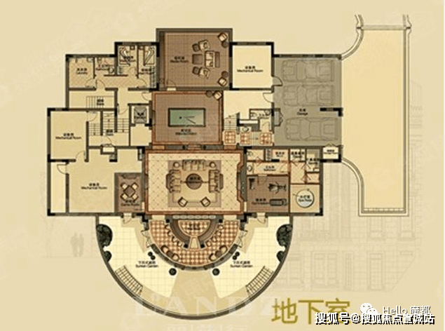 地下一层,东侧200平的地下庭院,保证地下一层的采光通风,专属私家影音厅,阔气低调的酒吧室,棋牌室,保姆阿姨房,酒吧台等
