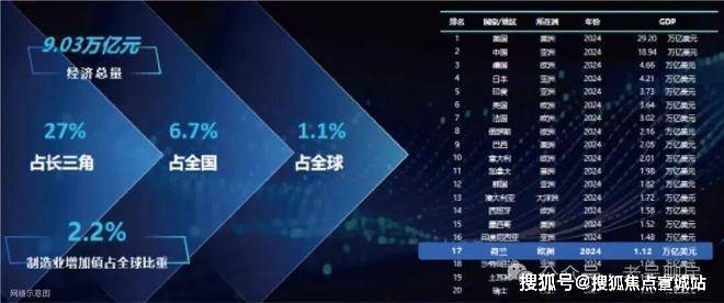 2024年,G60九城的GDP总量达到9万亿(1.27万亿美元),超过荷兰的经济总量,相当于全球各国经济总量排名的17位。
