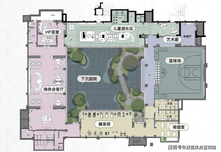 然后是空间“被释放了”。首层架空,配置丰富的互动空间,包括棋牌室、下午茶室、机器人咖啡吧等,约1900㎡的下沉式会所(首开16地块),配备宝山首个室内篮球馆、儿童活动室、健身房等 。