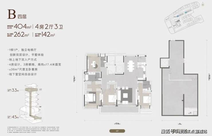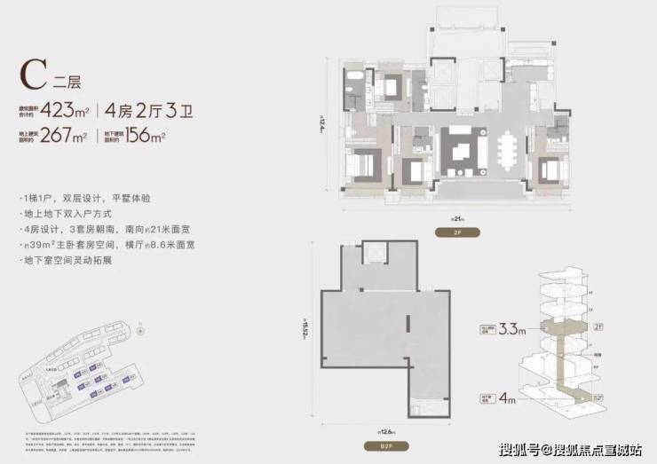 建筑面积合计约335-445m²,地上建筑面积约226-286m²,地下建筑面积约108-186m²,地上层高3.3m,地下层高4-6.65m,双入户方式,坐享买一层得两层的平墅生活。